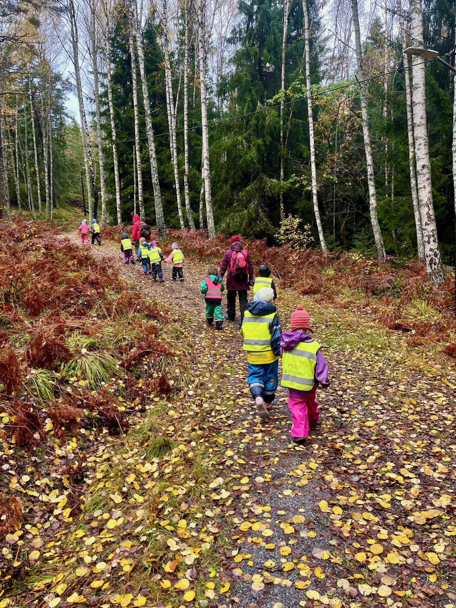 Vi håller till i en nybyggd förskola nedanför Norrtuna med skogen alldeles intill.